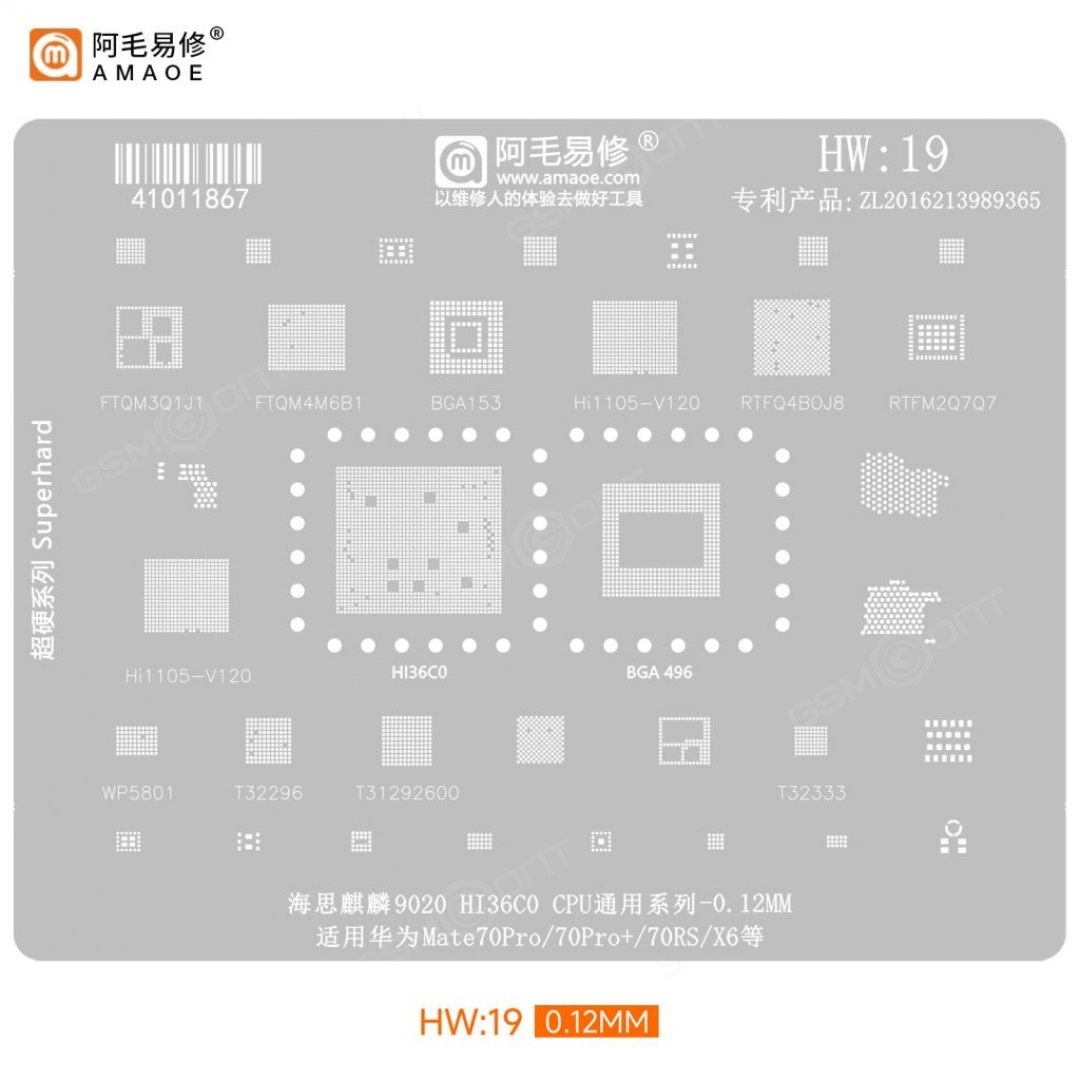 Трафарет Amaoe для Huawei HW19, Kirin 9020/ Hi36C0? Mate 70 Pro/ 70 Pro+ (T=0.12mm)