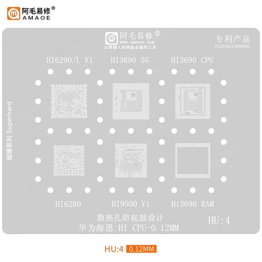 Трафарет Amaoe для процессоров HiSilicon HU:4 (T=0.12мм) | Артикул: 94093 | perm.gsm-opt.ru