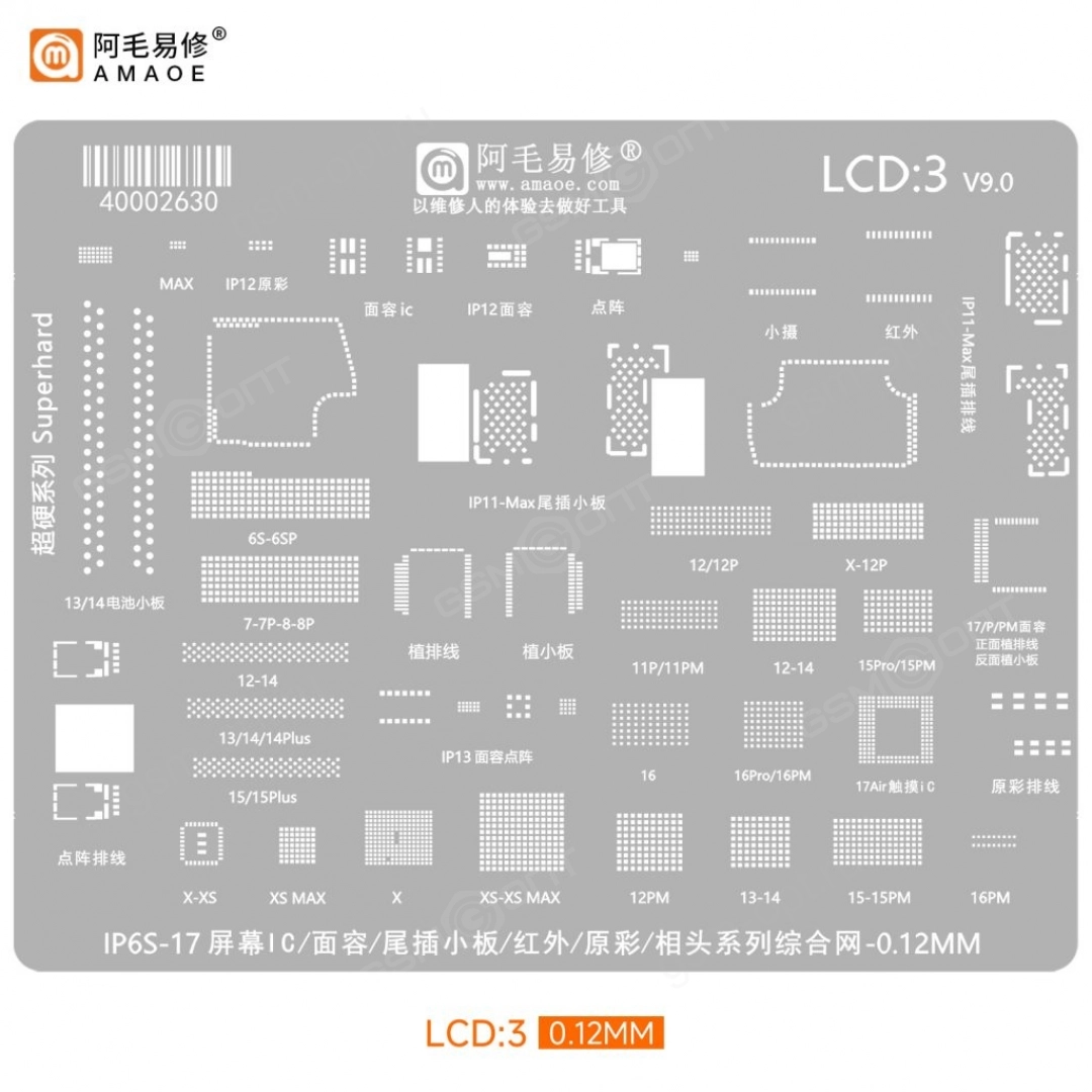 Трафарет Amaoe для микросхем дисплеев iPhone 11-16PM (T=0.12мм)