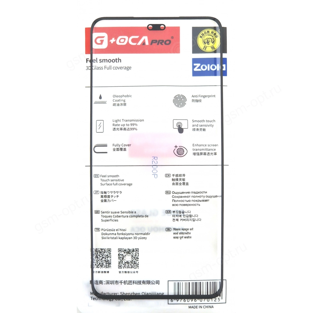 Стекло дисплея для переклейки G+OCA Pro для Honor 200 Pro черный + OCA | Артикул: 92233 | perm.gsm-opt.ru